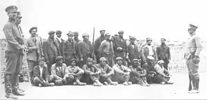 Striking Santa Cruz Province sheep ranch workers, prior to their illegal execution in 1921. Yrigoyen's unwillingness to prosecute these abuses did not prevent his UCR from a second, landslide victory amid an economic boom.