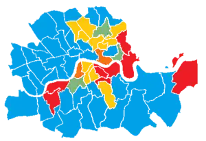![]() Colours denote the winning party. | |||||||||||||||||||||||||||||||||||||||||||||