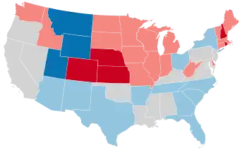 The Republicans gained twenty-two seats in the House of Representatives, increasing their majority over the Democrats. The Republicans also furthered a majority in the Senate, gaining four seats from the Democrats.[4]