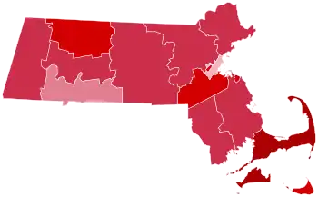 Coolidge swept every county in the state of Massachusetts, and his 65.34% of the popular vote would prove to be his fifth strongest state in the 1924 election in terms of popular vote percentage after neighboring Vermont, Michigan, Maine and Pennsylvania.[3] To date, this is the last time a Republican presidential candidate has carried every county in Massachusetts as well as the last election in which a Republican presidential candidate has won Suffolk County, home to the state's capital and largest city, Boston. No Republican has reached 60% of the vote since.[4] It is also the last time that the towns of Hadley and Hatfield and the cities of Boston, Cambridge, Chelsea, Chicopee, Fall River, Lawrence, and Revere voted Republican. From his time as governor, Coolidge remained relatively popular, for a Republican, among Irish Catholics and the other ethnic immigrant groups who populated Boston. Many of these voters would defect to the Democrats for Catholic Al Smith in 1928 and become reliable Democratic voters after that, making Boston a reliably Democratic city in every election that followed.