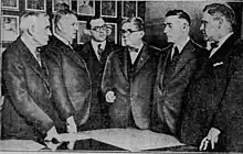 The Chicago Federation of Labor endorsed Thompson.[51] Margaret Haley, president of the Chicago Federation of Teachers, personally endorsed him as well.[51] The Cook County Wage-Earners' League ran an advertisement for Thompson in the Chicago Tribune, in which it claimed that 95 percent of the trade unions in Chicago endorsed him.[67] However, in actuality, labor support was divided between the two major party candidates. While the Cook County Wage Earners, headed by Chicago Federation of Labor vice-president Oscar F. Nelson, backed Thompson, a notable group of labor officials also backed Dever. Among those backing Dever were Chicago Federation of Labor president John Fitzpatrick and Illinois State Federation of Labor secretary Victory A. Olander.[68] Dever also received the endorsement of the union representing the city's transit employees (workers on its streetcar and elevated lines).[69][70]