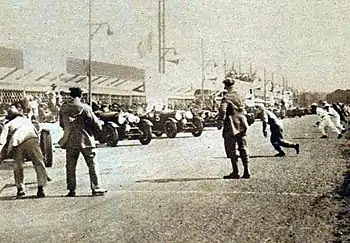 Just before the start of the race, a light squall came across the circuit. But it soon cleared and the weather was fine for the race.[20] From the start the Bentleys were in front, with Birkin taking the lead, ahead of Brisson in the Stutz, Laly's Ariès the four Chryslers and two of the Lagondas. But not d’Erlanger, who had flooded his engine at the start and had been last away.[20][11]