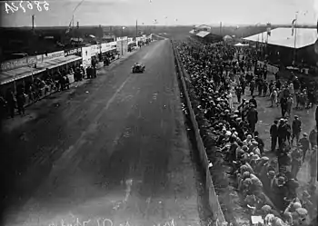 The big publicity from the previous year's race and the White House crash raised manufacturer interest and several British and American companies brought teams to the race.[1] In fact foreign cars outnumbered French ones for the first time. The race started at a record pace, but after two of the Bentleys and the Ariès retired early, it became a one-on-one duel between the Bentley and the Stutz.[1] They traded positions through the night and into the next morning. Going into the final hours the British car was suffering from water leaks and overheating, while the American car was losing its gears. Both teams drove as hard as they dared, and in the end the distance between the two was barely a lap, and both cars exceeded the previous record overall distance.