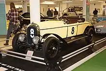 After an acrimonious departure from Salmson in 1923, André Lombard was barred from competing for five years.[14] In that time he founded his open company, Automobiles Lombard, making small voiturettes like Salmson. The first production model was the AL3, designed by Edmond Vareille (another ex-Salmson employee). Low-slung, the standard double-overhead-cam 1.1-litre engine had a 4-speed gearbox and had a top speed of 130 kp/h (80 mph). Lombard got ex-Salmson works driver Lucien Desvaux to drive. A second car arrived for Amilcar co-founder André Morel but did not practice.[15]