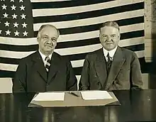 The Republican Convention was held in Kansas City, Missouri from June 12 to 15 and nominated Hoover on the first ballot. With Hoover disinclined to interfere in the selection of his running mate, the party leaders were at first partial to giving Dawes a shot at a second term, but when that information leaked, Coolidge sent an angry telegram that said that he would consider a second nomination for Dawes, whom he hated, a "personal affront."[7] To attract votes from farmers who were concerned about Hoover's pro-business orientation, the nomination was instead offered to Curtis. He accepted and was nominated overwhelmingly on the first ballot.[8] Curtis was the first candidate of Native American ancestry nominated by a major party for national office.