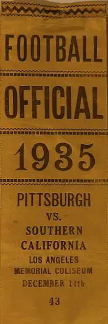 - ↑ "Play-By-Play Story of Pitt's 12–7 Victory Over Trojans". The Los Angeles Times. Los Angeles, California. December 15, 1935. p. Part I-23. Retrieved April 28, 2022 – via Newspapers.com.