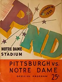 - ↑ "Official 1935 University of Pittsburgh Football Roster". Official Football Program for University of Pittsburgh Versus Notre Dame. Notre Dame Football Program Committee: 29. October 19, 1935.