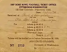 109. R. C. Samuelson (January 1, 1937). "Football Game Will Start at 2:15 Today". The Pasadena Post. p. 1. Retrieved July 3, 2022 via Newspapers.com.