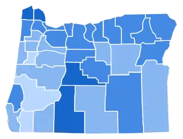 | Deschutes | 4,278 | 72.71% | 1,299 | 22.08% | 257 | 4.37% | 50 | 0.85% | 2,979 | 50.63% | 5,884 |