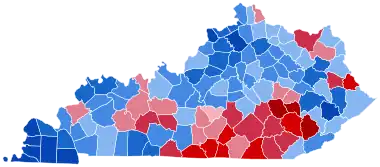 | Breathitt | 3,977 | 71.14% | 1,602 | 28.66% | 11 | 0.20% | 2,375 | 42.49% | 5,590 |