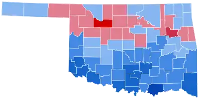 | Oklahoma | 53,649 | 59.86% | 35,639 | 39.77% | 329 | 0.37% | 18,010 | 20.10% | 89,617 |