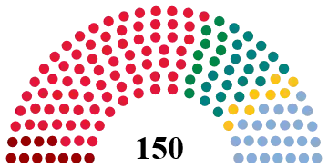 Last election 70 seats, 42.5% 36 seats, 21.3% 23 seats, 16.0%