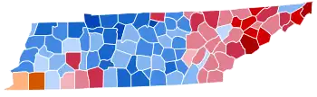 For over a century after the Civil War, Tennessee was divided according to political loyalties established in that war. Unionist regions covering almost all of East Tennessee, Kentucky Pennyroyal-allied Macon County, and the five Western Highland Rim counties of Carroll, Henderson, McNairy, Hardin and Wayne[3] voted Republican — generally by landslide margins — as they saw the Democratic Party as the "war party" who had forced them into a war they did not wish to fight.[4] Contrariwise, the rest of Middle and West Tennessee who had supported and driven the state's secession was equally fiercely Democratic as it associated the Republicans with Reconstruction.[5] After the disfranchisement of the state's African-American population by a poll tax was largely complete in the 1890s,[6] the Democratic Party was certain of winning statewide elections if united,[7] although unlike the Deep South Republicans would almost always gain thirty to forty percent of the statewide vote from mountain and Highland Rim support.