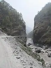 Kali Gandaki valley near confluence with Miristi Kola, at Tatopani. (road as in 2012).