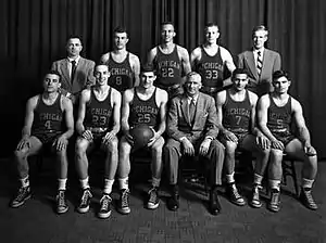 Jim Skala was both the team captain and the team's leading scorer. He totaled 258 points in 22 games (169 points in conference games) for an average of 11.7 points per game.[1] At the end of the season, Skala was voted by his teammates as the team's Most Valuable Player.[3] Skala later served as the head basketball coach at Eastern Michigan University (1954–1960) before returning to Michigan as an assistant basketball coach under Dave Strack from 1960 to 1966.[4]