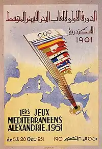 The 1951 Mediterranean Games, officially known as the I Mediterranean Games, and commonly known as Alexandria 1951, were the 1st Mediterranean Games. The Games were held for 15 days from 5 to 20 October 1951 in Alexandria, Egypt, where 734 athletes (all men) from 10 countries participated. There were a total of 13 different sports.