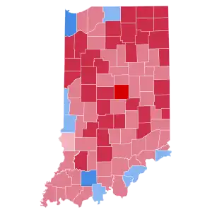 | Tippecanoe | 24,572 | 63.55% | 14,041 | 36.31% | 55 | 0.14% | 10,531 | 27.23% | 38,668 |