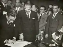 Jango took office in September 1961. In foreign policy, he continued the Independent Foreign Policy, expanding relations with the socialist bloc and opposing the sanctions proposed by the U.S. against Cuba.[18] This foreign policy did not accept the requirement of alignment with the U.S. or the Soviet Union. Even so, negotiations with the U.S. were important due to foreign debt and the regulation of foreign capital.[37]