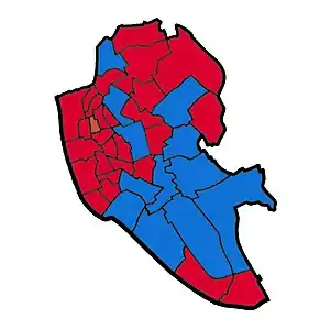 Map of Liverpool showing wards won (first placed party)[1]