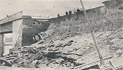 In 1900, only 4,000 of Zagreb's 57,000 inhabitants lived in Trnje and Trešnjevka, while Peščenica had not yet been incorporated into the city.[20] By the 1931 census, the population of Trešnjevka alone had grown to 21,350 residents, increasing the necessity and value of river regulation.[21] The surroundings of the Sava, which had many meanders, oxbow lakes and islands, were partially protected when the river was channelised at the beginning of the 20th century. The oxbow lakes were fenced off by fascines.[22] Work on flood defences was sporadic and of poor quality due to a scarcity of funding. An embankment protecting Trnje was partially built in 1924–25, but washed away by the November 1925 flood.[22] By 1929 the central part of the suburbs was protected by an embankment,[19] which was in the 1930s extended away from the river to Radnička Road in Peščenica in the east, and along the Črnomerec stream up to the northern border of Trešnjevka in the west.[23][24] These defences were not enough to protect the city from the 1933 flood, when the Sava, at a height of 455 centimetres (14 ft 11 in),[25] breached the embankments, causing flooding that lasted seven weeks.[26] The embankments were mended and somewhat improved over the next several years, which were nevertheless marked by successive floods.[27] Further works were carried out in 1945 and 1960–61 by youth work actions organised by the Communist government. Embankments were extended and flood defences improved in Trešnjevka, Trnje, and Peščenica.[28][29][30] However, the embankments were still low and of poor construction quality, and protected only the central part of the city, leaving the flanks exposed.[31][24]