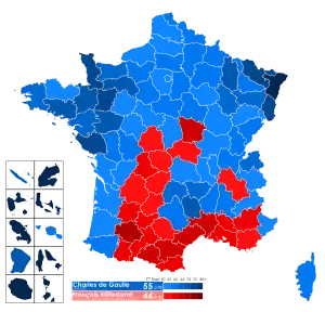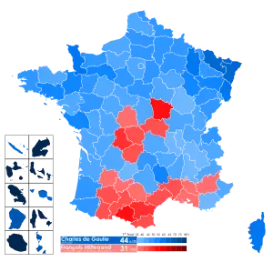 Presidential elections were held in France on 5 December 1965, with a second round on 19 December. They were the first direct presidential elections in the Fifth Republic and the first since the Second Republic in 1848. It had been widely expected that incumbent president Charles de Gaulle would be re-elected, but the election was notable for the unexpectedly strong performance of his left-wing challenger François Mitterrand.
