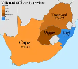 | Provinces | Cape | Natal | Orange Free State | Transvaal | Total |