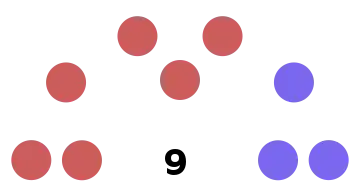 PartyVotes%Seats+/–