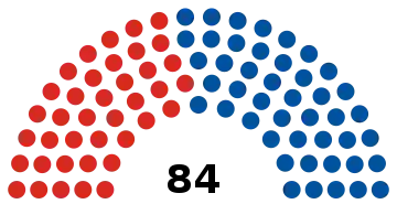 Last election 44 seats, 43.6% 35 seats, 41.4%