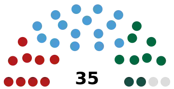 35 of the 50 seats in the House of Representatives[lower-alpha 1]