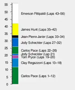 From the start – in which a lights system was being used for the first time in any Grand Prix, replacing the traditional national flag – Carlos Pace led from Pryce.