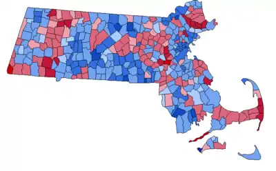 | Nantucket | 1,115 | 42.46% | 1,399 | 53.27% | 112 | 4.27% | -284 | -10.81% | 2,626 |