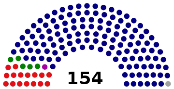 Last election 60.81%, 135 seats 18.32%, 9 seats 13 seats