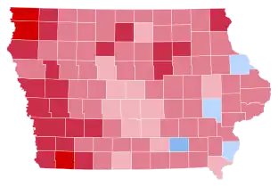 Iowa was won by former California Governor Ronald Reagan (R) by a comfortable margin of about 13 points.[1] As of the 2020 presidential election, this is the last presidential election in which a Republican has won Iowa by more than 10 points, as well as the last time a Republican won Polk County,[2] home to Iowa's capital and most populated city, Des Moines. It was also the last time until Donald Trump in 2016 that a Republican presidential candidate won the following counties: Boone, Cerro Gordo, Lee, Webster and Worth.[2]