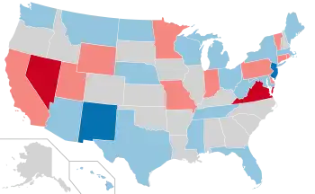 The 1982 United States Senate elections were held on November 2, 1982. They were elections for the United States Senate following Republican gains in 1980. The 33 Senate seats of Class 1 were up for election in 1982. A total of four seats changed hands between parties, with Democrats winning seats in New Jersey and New Mexico, and Republicans taking seats in Nevada and the seat of the lone independent, Senator Harry Byrd Jr., in Virginia. Democrats made a net gain of one seat bringing them to 46 seats, while Republicans stayed at 54 seats for a majority. However, the Democratic gain in New Jersey replaced a Republican that had been appointed earlier in the year.