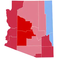 The presidential election of 1984 was a very partisan election for Arizona, with just under 99% of the electorate voting for either the Democratic or Republican parties, and only four parties appearing on the ballot.[1] Nearly every county in Arizona voted with majorities for Reagan, a particularly strong turnout even in this typically conservative-leaning state. Reagan's win in the Grand Canyon state was largely the result of a lopsided 45% victory margin in Maricopa County, the state's most populated county and home to Phoenix. Mondale did best in predominantly Native American Apache County, which was typical of his gains vis-à-vis Jimmy Carter in Native American counties throughout the nation; Reagan thus became the first-ever Republican to win the White House without carrying this county.[2] Mondale also won heavily unionized copper-mining Greenlee County; albeit his performance there was the worst by a Democrat since statehood.