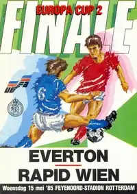 The 1985 European Cup Winners' Cup Final was a football match contested between Everton of England and Rapid Wien of Austria. It was the final match of the 1984–85 European Cup Winners' Cup and the 25th European Cup Winners' Cup final. The final was held at Feijenoord Stadion in Rotterdam, Netherlands, on 15 May 1985. Everton, which dominated throughout, won the match 3–1 thanks to goals by Andy Gray, Trevor Steven and Kevin Sheedy. Everton were unable to defend the trophy: as league champions they would have entered the 1985–86 European Cup, but they were not permitted to play in either competition following the events at the Heysel Stadium, which saw all English clubs banned from European competitions.