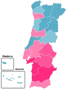 | Portalegre | 28,961 | 32.42% | 22,024 | 24.66% | 33,137 | 37.10% | 5,196 | 5.82% | 78.05% | |