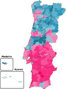 | Vila Real | 84,459 | 63.73% | 35,050 | 26.45% | 9,362 | 7.06% | 3,655 | 2.76% | 68.59% | |