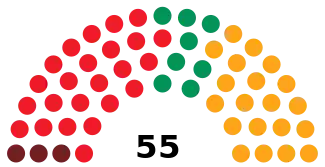 Last election 30 seats, 48.4% 23 seats, 37.8%[lower-alpha 1] 0 seats, 3.0%