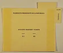 The plebiscite – as detailed in the 1980 Constitution – consisted of two choices:
