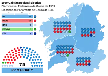 - 1 2 "Parliament of Galicia election results, 17 December 1989" (PDF). www.juntaelectoralcentral.es (in Spanish). Electoral Commission of Galicia. 8 February 1990. Retrieved 25 September 2017.