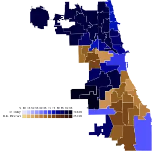 Daley won a majority in 31 of the city's wards, with Pincham winning a majority in the remaining 19 wards.[4][13]