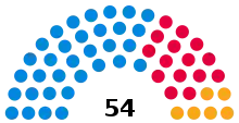 Party Seats Gains Losses Net gain/loss Seats % Votes % Votes +/−