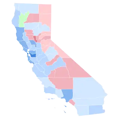 | Yuba | 34.24% | 5,785 | 43.40% | 7,333 | 21.53% | 3,637 | 0.83% | 140 |