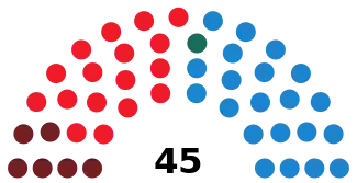 Last election 15 seats, 30.4% 21 seats, 41.0% 6 seats, 14.8%