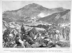On 4 April 1897, an exchange of fire between soldiers from opposing outposts at Bairaktari gradually escalated to skirmishes along the frontier in the Rapsani sector. The next morning, the Nezerou Detachment launched a major attack, captured most of the Turkish outposts and forced a retreat along the line. Turkish counter-attacks were held back on the flanks, but the three Greek battalions defending the center were soon overwhelmed by twenty-two Turkish battalions and five artillery batteries. Greek forces quickly retreated to Mati, leaving the Melouna Pass undefended. As a result, the 2nd Infantry Brigade was also forced to retreat to Mati.[2]