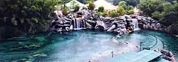 The lagoon remained as a scenic viewpoint (and was renamed "Ariel's Grotto", complete with a King Triton spouting statue) until 2004, when the water was drained and the sets and infrastructure were demolished. Pooh's Playful Spot was built where the attraction formerly stood and operated between 2005 and 2010[7] before making way for the Seven Dwarfs Mine Train as part of the Fantasyland Expansion. However, the exterior to The Little Mermaid: Ariel's Undersea Adventure contains a silhouette of the Nautilus in a rock wall[8] and the tiki bar Trader Sam's Grog Grotto at Disney's Polynesian Village Resort serves a cocktail called the "Nautilus"[9] which is itself served in a stylized drinking vessel resembling the submarine.[10]