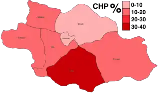 Results obtained by Republican People's Party (CHP) by district.