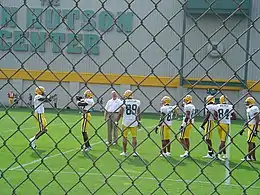 Training camp in August 2004. L-R: #89 wide receiver Robert Ferguson; #83 kick returner Antonio Chatman, #86 wide receiver Carl Ford, #84 wide receiver Javon Walker, and #81 wide receiver Andrae Thurman