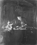 NK3291 | Navolger van G. Dou | Groenteverkoopster bij kaarslicht | 1439 | depot ICN |